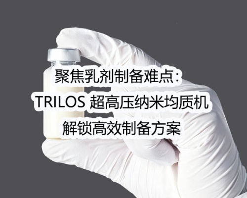 研究确认了以研究TRILOS超高压纳米均质机的应用为重点,以制备粒径小、分布均匀的乳剂为目的,采用正交实验方法,确定了静脉脂肪乳制备的高压均质工艺及参数为:用交互均质腔将初乳在20000psi压力下均质1次,测定原料药物含量,调整pH值,然后在20000PSI下均质2次,温度控制在约20℃,平均粒径为(230±4)nm。表明TRILOS超高压纳米均质机的均质效果好、粒径控制准,能保证产品稳定性和批次一致性,且操作维护简便,能耗低,适配医药制剂规模化生产需求。